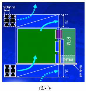 另外在機架內的放置空間上,42U的標準機架里可以放3臺12~14U機箱,若將機箱降至10U則可以放置4臺,這樣可以增加整體空間的利用率,所以有了10U機箱的設計需求。在各種不同高度的機箱設計中,風扇散熱系統(tǒng)的放置位置、方式與總散熱效能能夠達到200*14=2800W,將會是ATCA機箱設計所要考慮的最重要因素之一,尤其是在10U的機箱設計上。