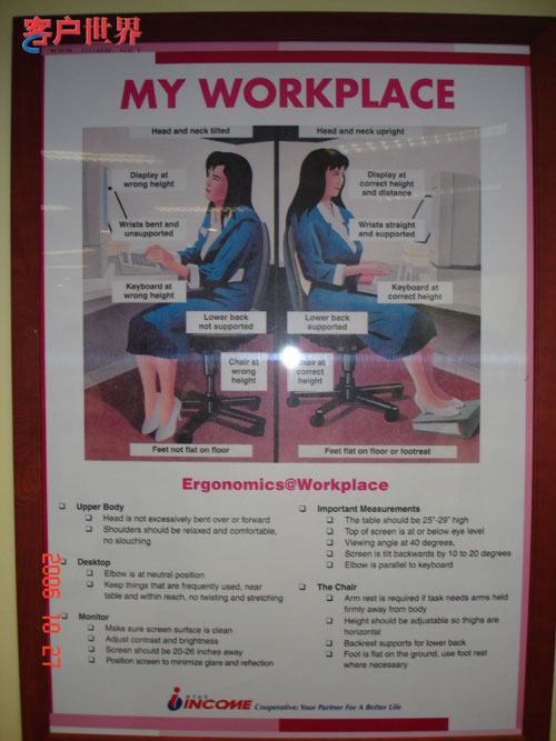 第三,不良座席設(shè)置,包括過低的顯示屏容易使人產(chǎn)生頸椎病,不可調(diào)節(jié)的座椅和不良坐姿影響脊椎健康,不舒服的溫度和濕度以及燈光容易使人產(chǎn)生疲勞和慢性倦怠,等等。