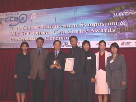 香港 2002年10月31日-在全球呼叫中心業(yè)享有盛譽的香港客戶中心協會日前宣布了2002年度各獎項獲獎名單。在今天下午舉行的第三屆年度呼叫中心頒獎典禮上,飛翱網訊成為年度最佳呼叫中心獎得主之一。這是繼去年以來,飛翱網訊連續(xù)第二年獲此殊榮。與此同時,來自于飛翱網訊香港公司的業(yè)務主管,Gray Ho先生被授予了呼叫中心團隊領導人優(yōu)勝獎。經過專家評審團的層層篩選,飛翱網訊在各個考核指針上均有不俗的表現,并最終從其它數十家香港呼叫中心運營商中脫穎而出。