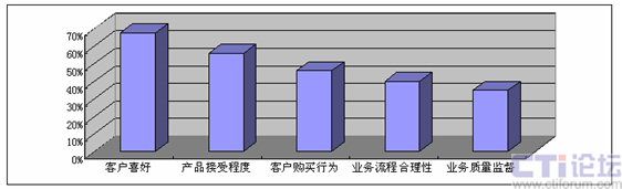 那么保險(xiǎn)企業(yè)希望通過(guò)進(jìn)一步深入開(kāi)展電話中心信息化工作得到哪些效用或者有價(jià)值的信息呢,我們認(rèn)為,電話中心為保險(xiǎn)企業(yè)所提供的信息中最重要的依然是“客戶(hù)的聲音”,具體來(lái)說(shuō),包括客戶(hù)喜好和客戶(hù)購(gòu)買(mǎi)行為等,其次便是業(yè)務(wù)流程信息。企業(yè)管理層對(duì)來(lái)自電話中心的不同信息的關(guān)注程度如下圖所示。