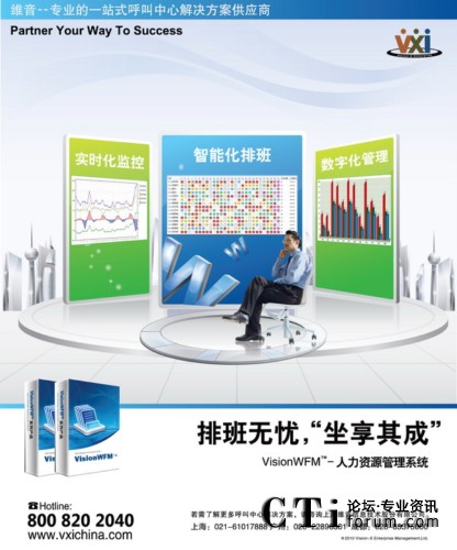 VisionWFM解決方案是為降低客戶服務中心的運營成本、提高客戶服務中心管理效率而設計的。我們可以通過系統(tǒng)軟件,科學地改進運營策略和管理方法,使客戶服務中心在服務質量、客戶滿意度和成本控制等績效指標上都取得極大的提高。