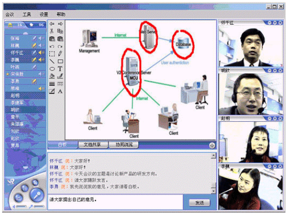V2 Conference可以利用普通的PC機(jī)、標(biāo)準(zhǔn)的視頻攝像頭、耳機(jī)和麥克風(fēng),通過Internet或者是局域網(wǎng)進(jìn)行會議。與傳統(tǒng)的需要專用的服務(wù)器和硬件支持的視頻會議相比,企業(yè)無需投入高昂的成本,就可以實(shí)現(xiàn)高質(zhì)量的遠(yuǎn)程會議。同時,V2 Conference還提供了遠(yuǎn)程會議管理的功能。