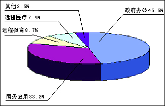其中,視頻會(huì)議業(yè)務(wù)是目前階段視頻通信發(fā)展的重點(diǎn),其主流是基于IP協(xié)議的視頻會(huì)議技術(shù)。目前的市場(chǎng)特點(diǎn)是硬件視頻會(huì)議已經(jīng)被接受,軟件視頻會(huì)議正在成長。但是競(jìng)爭(zhēng)格局分散,仍然處于“戰(zhàn)國時(shí)代”,還沒有一家公司處于絕對(duì)的統(tǒng)治地位。當(dāng)前視頻會(huì)議的主要應(yīng)用場(chǎng)所分布如圖1。