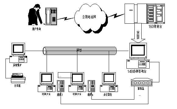本系統(tǒng)基于WINDOWS95/98/NT操作系統(tǒng),操作簡易、配置靈活、安全可靠,是建立148法律咨詢電話服務系統(tǒng)的最佳選擇。