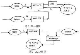 A2D法(Analog to Data) A2D法即事先將呼入呼叫中心的DTMF電話通過VoIP網(wǎng)關(guān)轉(zhuǎn)化為IP電話,再和來(lái)自Internet的IP電話一同接入座席代表。A2D法實(shí)現(xiàn)相對(duì)比較麻煩,但其將絕大部分工作放到計(jì)算機(jī)網(wǎng)絡(luò)這個(gè)開放的軟件平臺(tái)來(lái)做,除了有利于更新和開發(fā)外,還能降低成本。同時(shí),這種結(jié)構(gòu)能在地理上和物理上伸縮自如,不僅便于高度集成,而且便于跨地區(qū)構(gòu)建。
