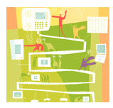 俗話說,多多益善。但是當(dāng)談到多個網(wǎng)絡(luò)的管理或費用承擔(dān)等問題時,恐怕大多數(shù)人都會同意一個網(wǎng)絡(luò)要比兩個或者三個更為經(jīng)濟有效。這其實是很容易理解的----當(dāng)數(shù)據(jù),語音和視頻能夠利用同一個網(wǎng)絡(luò)進(jìn)行傳輸?shù)脑,還有什么必要在每個桌子拖上一大堆電線,讓公司維護(hù)三五套網(wǎng)絡(luò)硬件,還要養(yǎng)活好幾組技術(shù)支持隊伍呢?更何況一個綜合性的網(wǎng)絡(luò)還能集中精力為每個用戶提供更好的服務(wù)?于是,IP電話應(yīng)運而生,這種技術(shù)讓很多公司有機會利用現(xiàn)有的網(wǎng)絡(luò)框架贏得更大的利益。
