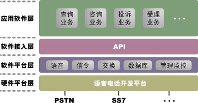 2.系統(tǒng)建設(shè)周期較短,功能擴(kuò)展性強(qiáng)——語音卡方案的主要功能都由軟件編程實(shí)現(xiàn)。國內(nèi)一些語音卡方面的軟件開發(fā)商已經(jīng)積累了語音接續(xù)、排隊(duì)分發(fā)、撥內(nèi)外線、電話會(huì)議、文本傳真轉(zhuǎn)換、文本語音轉(zhuǎn)換等功能模塊,通過簡單組合10種符合國際規(guī)范的模塊,就可以開發(fā)出滿足用戶需求的各種應(yīng)用系統(tǒng);谕瑯釉,系統(tǒng)開發(fā)新功能也較為容易。