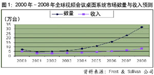 國內(nèi)的研究機(jī)構(gòu)也不甘落后,對2002年內(nèi)地視頻會議市場銷售額的預(yù)測高達(dá)20億至40億元人民幣不等。而眾多廠商也一致認(rèn)為,未來的一段時(shí)間將成為視頻通信,尤其是視頻會議市場發(fā)展的黃金時(shí)期。