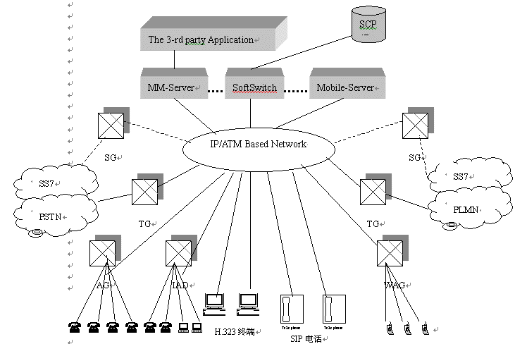 從現(xiàn)有的電信網(wǎng)絡(luò)向下一代網(wǎng)絡(luò)的演進(jìn)并非一日之工,使用軟交換體系構(gòu)建的新網(wǎng)絡(luò)將和目前存在的電信網(wǎng)并存相當(dāng)長(zhǎng)的時(shí)間,軟交換體系可以通過(guò)網(wǎng)絡(luò)互通和現(xiàn)有網(wǎng)絡(luò)并存,并最終取代現(xiàn)有的網(wǎng)絡(luò),向用戶提供承載在分組網(wǎng)上的寬帶、多業(yè)務(wù)應(yīng)用,最終實(shí)現(xiàn)現(xiàn)有數(shù)據(jù)、語(yǔ)音和移動(dòng)網(wǎng)絡(luò)的融合。