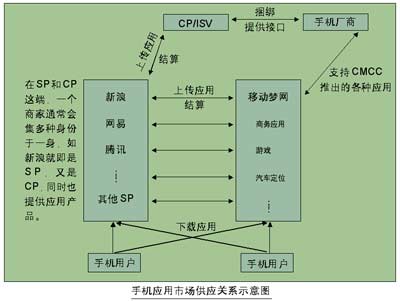 自推出2.5G、3G網(wǎng)絡(luò)以來,中移動、聯(lián)通開始對手機應用市場傾注了更多的關(guān)注。中移動首先推出了移動夢網(wǎng),為第三方軟件開發(fā)商提供了與手機用戶直接接觸的平臺。而第三方軟件的出現(xiàn),預示著手機應用市場銷售模式全面的改觀,除了必要的應用,如電話簿、短信平臺,大部分應用都可以不再預裝到手機中,而是由消費者自主選擇,通過網(wǎng)絡(luò)下載獲得。