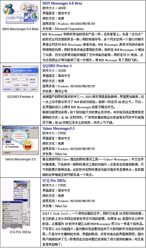 四款主流即時(shí)信息軟件2003年新版評(píng)測