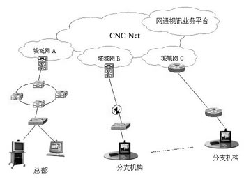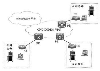 網(wǎng)通視訊業(yè)務(wù)作為應(yīng)用層的服務(wù),可以通過客戶的分支機(jī)構(gòu)之間由MPLS VPN組成的專網(wǎng)來承載視頻通信,或者通過接入網(wǎng)通的視頻VPN來使用視頻通信服務(wù)。