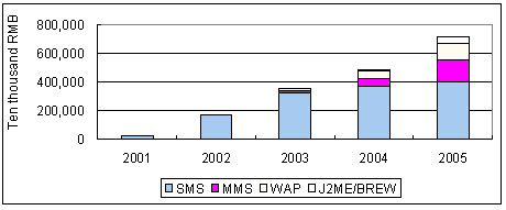由于SMS、MMS、J2ME/BREW能帶來(lái)的收入較為可觀,目前整個(gè)移動(dòng)增值服務(wù)價(jià)值鏈的資金主要流向該三類業(yè)務(wù)。在SMS領(lǐng)域,產(chǎn)業(yè)鏈合作活躍,SP對(duì)游戲、交友、鈴聲、圖片等業(yè)務(wù)的投入很大;MMS適合點(diǎn)對(duì)點(diǎn)應(yīng)用以及信息點(diǎn)播服務(wù),市場(chǎng)潛力也很大;J2ME/BREW則以開(kāi)發(fā)交互式業(yè)務(wù)為主,同時(shí)因是未來(lái)發(fā)展方向,屬于戰(zhàn)略性產(chǎn)品,倍受產(chǎn)業(yè)鏈的重視;WAP產(chǎn)品在移動(dòng)增值服務(wù)市場(chǎng)上將長(zhǎng)期存在,但占整個(gè)移動(dòng)增值服務(wù)市場(chǎng)的份額比較低。