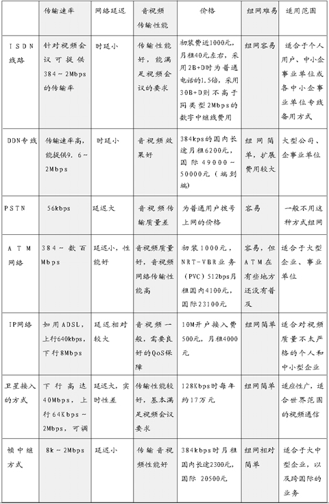 對(duì)于普通的個(gè)人用戶(hù),如果想嘗試一下視頻會(huì)議的感受可以試一試PSTN接入。PSTN公共電話網(wǎng)是目前使用最廣泛的網(wǎng)絡(luò)系統(tǒng),它的優(yōu)點(diǎn)是覆蓋區(qū)域廣、易于使用、價(jià)格較低,聯(lián)網(wǎng)容易。但網(wǎng)絡(luò)速度僅能提供到56kbps,線路質(zhì)量較差,傳輸速率較低。對(duì)于視頻會(huì)議的聲音圖像傳輸遠(yuǎn)遠(yuǎn)不夠,基于軟件的視頻會(huì)議系統(tǒng)能達(dá)到4f/s的圖像傳輸速率,其最大的缺點(diǎn)是圖像質(zhì)量太差,會(huì)大大影響會(huì)議的質(zhì)量,一般用得很少。