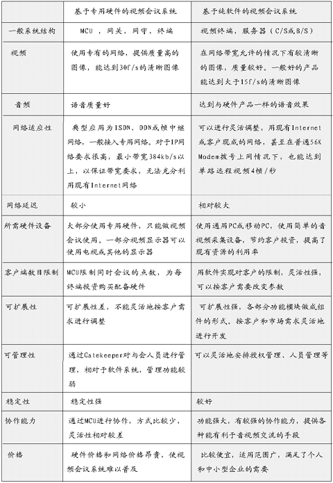 專(zhuān)用硬件與純軟件的視頻會(huì)議系統(tǒng)