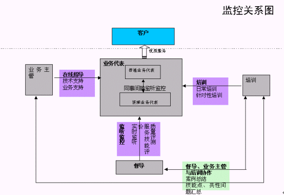 舉例來(lái)說(shuō),一個(gè)呼叫中心的質(zhì)量管理人員的業(yè)務(wù)管理知識(shí)很豐富,她的呼叫中心的人員綜合素質(zhì)也很高,90%以上為大學(xué)本科及以上;但并不能得出這個(gè)呼叫中心的服務(wù)質(zhì)量高的結(jié)論。為什么呢?我們來(lái)看看兩個(gè)角色的協(xié)作與配合。質(zhì)量管理人員每次在監(jiān)聽監(jiān)控的過(guò)程中,座席都很不樂意,他們感覺就是為了在月底的時(shí)候扣績(jī)效考核的分?jǐn)?shù)。沒有座席人員愿意讓自己的錄音讓質(zhì)檢人員監(jiān)聽。另外,當(dāng)質(zhì)檢人員在監(jiān)聽的過(guò)程中發(fā)現(xiàn)的問(wèn)題,告知座席,希望按照規(guī)定來(lái)回答,座席人員有種種理由;或者表面上接受,實(shí)際在電話中并沒有太多的改變。以上的問(wèn)題,在各個(gè)呼叫中心都或多或少的存在?如何來(lái)解決這些矛盾,達(dá)到雙贏得目的呢?這就成為我們本次討論的重點(diǎn)-呼叫中心的質(zhì)量管理。