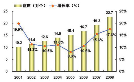 隨著中國(guó)呼叫中心市場(chǎng)規(guī)模的逐步擴(kuò)大,中國(guó)呼叫中心的發(fā)展速度逐漸放緩,中國(guó)呼叫中心產(chǎn)業(yè)已經(jīng)進(jìn)入成熟期,呼叫中心坐席的增長(zhǎng)速度從2001年的20%逐漸下降到2005年的8%左右。主要原因是大型行業(yè)用戶市場(chǎng)的飽和以及中小型企業(yè)市場(chǎng)的緩慢發(fā)展。