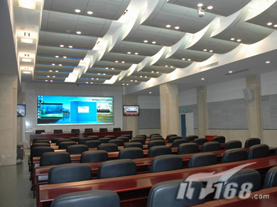 在副會場方面,和主會場區(qū)別不大,不過比主會場要光亮一點(diǎn),面積也小了很多,所以主顯示系統(tǒng)只需要SONY PX40正面投影(120寸)就可以搞定。VPL-PX40可以多種方式安裝,包括桌面正投,吊頂及背投。供選購的兩款鏡頭擴(kuò)展了安裝的靈活性。中央控制開關(guān)功能讓用戶能通過中央電源開關(guān)直接開關(guān)投影機(jī)。VPL-PX40還配備了獨(dú)特的密碼認(rèn)證系統(tǒng),采用SONY液晶板的新型光學(xué)系統(tǒng),結(jié)合265W