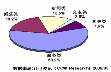 2006年,IVR業(yè)務(wù)的發(fā)展已經(jīng)具備了良好的外部條件。首先,具有龐大的潛在用戶群。有關(guān)統(tǒng)計(jì)顯示,截至2005年11月,中國(guó)移動(dòng)用戶數(shù)量達(dá)到3.88億,固定電話用戶數(shù)量達(dá)到3.51億,其中無線市話用戶數(shù)量達(dá)到8622萬。其次,市場(chǎng)容量急劇膨脹;再次,業(yè)務(wù)收入快速增長(zhǎng);最后,IVR不受手機(jī)型號(hào)的限制,潛在用戶的普及率極高。這些使得IVR具有良好的發(fā)展?jié)摿,?jì)世資訊(CCW Research)認(rèn)為,IVR是繼短信(SMS)之后的又一座大型金礦。