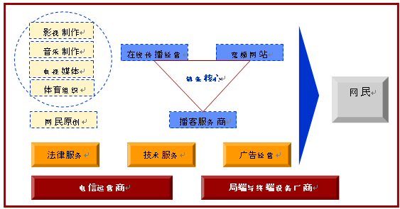 對(duì)于互聯(lián)網(wǎng)來(lái)講,網(wǎng)絡(luò)視頻代表網(wǎng)絡(luò)內(nèi)容展現(xiàn)形式的變革,而這種變革將帶動(dòng)一個(gè)產(chǎn)業(yè)鏈條的發(fā)展,同時(shí)產(chǎn)業(yè)鏈條各個(gè)環(huán)節(jié)也會(huì)反過(guò)來(lái)制約網(wǎng)絡(luò)視頻的發(fā)展。2006年以前的中國(guó)網(wǎng)絡(luò)視頻發(fā)展處于一個(gè)初級(jí)階段,聚集網(wǎng)民注意力,形成網(wǎng)民對(duì)網(wǎng)絡(luò)視頻內(nèi)容的瀏覽習(xí)慣是這個(gè)階段網(wǎng)絡(luò)視頻發(fā)展的核心。但是因?yàn)樯虡I(yè)模式的不成熟,網(wǎng)絡(luò)視頻盈利能力弱的基本原因,產(chǎn)業(yè)鏈條中的多個(gè)環(huán)節(jié)都成了抑制網(wǎng)絡(luò)視頻發(fā)展的因素。例如:寬頻形式對(duì)網(wǎng)絡(luò)資源的要求一方面加大了寬頻內(nèi)容運(yùn)營(yíng)的成本,另一方面對(duì)網(wǎng)民終端的網(wǎng)絡(luò)條件要求也明顯高于以前的網(wǎng)絡(luò)條件,而這些問(wèn)題要求電信運(yùn)營(yíng)商既要降低基礎(chǔ)網(wǎng)絡(luò)資源的價(jià)格又要提高網(wǎng)絡(luò)資源的質(zhì)量,這些工作和讓步短時(shí)間內(nèi)電信運(yùn)營(yíng)商很難完成,寬頻內(nèi)容運(yùn)營(yíng)商的運(yùn)營(yíng)成本就保持居高不下而網(wǎng)民的網(wǎng)絡(luò)視頻效果就差強(qiáng)人意了。像這樣充滿著矛盾因素的抑制環(huán)節(jié)在整個(gè)產(chǎn)業(yè)鏈條中還有很多,因此2006年以前的中國(guó)網(wǎng)絡(luò)視頻發(fā)展沒有突破產(chǎn)業(yè)束縛進(jìn)入發(fā)展的快車道。