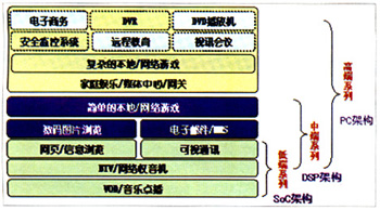 當(dāng)前國內(nèi)IPTV業(yè)務(wù)試點(diǎn)中采用的機(jī)頂盒,包括華為、中興、UT等主流廠商都主要采用了基于DSP架構(gòu)的技術(shù)解決方案,除能滿足點(diǎn)播、直播等標(biāo)清業(yè)務(wù)需求外,還可通過軟件升級,以支持信息瀏覽、簡單的本地/網(wǎng)絡(luò)游戲等增值業(yè)務(wù),基本上可滿足上述業(yè)務(wù)一定規(guī)模用戶商用要求。
