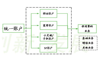 由于目前我國的信用體系尚不完善,所以,電信企業(yè)自身需要首先完善企業(yè)級的客戶信用體系,而設(shè)立統(tǒng)一實名制賬戶是完善客戶信用體系的有效途徑。首先,建立實名制賬戶便于固網(wǎng)運營商構(gòu)建相對完整、準確的客戶信息資料庫。其次,通過建立統(tǒng)一賬戶,可以將目前彼此孤立的固定電話、小靈通、寬帶、未來的手機業(yè)務及增值業(yè)務等各子消費賬戶相關(guān)聯(lián),從而方便運營商建立客戶業(yè)務記錄,以及對多消費賬戶進行統(tǒng)一的信用管理。第三,運營商可以針對統(tǒng)一賬戶的消費總額提供積分獎勵,增加用戶黏度。統(tǒng)一賬戶與各消費賬戶的關(guān)聯(lián)關(guān)系如圖4所示。