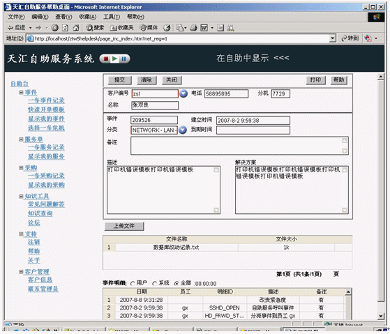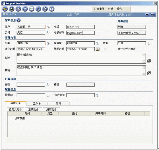 事件記錄應(yīng)該在某個服務(wù)臺工具中記錄和跟蹤,該工具最好是作為集成的服務(wù)管理工具集的構(gòu)成部分。該工具應(yīng)該在引發(fā)新的事件時(shí)提供最基本的事件記錄。比如為了幫助提高效率,當(dāng)你在天匯幫助臺的用于記錄事件的事件窗口中輸入請求發(fā)起者的姓名時(shí),利用客戶數(shù)據(jù)庫可以自動填充諸如位置、部門和聯(lián)系詳細(xì)信息等字段。天匯幫助臺還支持使用計(jì)算機(jī)電話集成