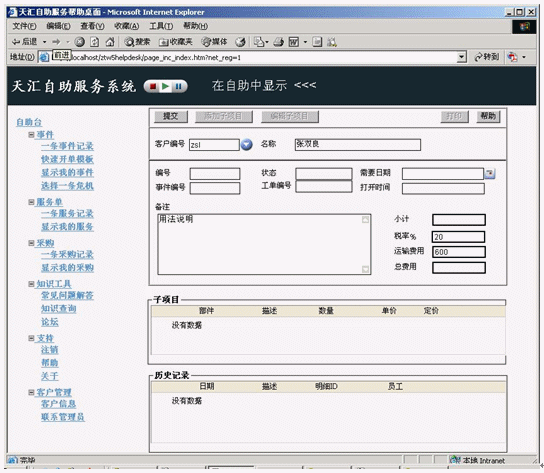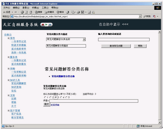 但是,隨著組織轉(zhuǎn)向自助服務(wù),對復(fù)雜維護(hù)過程的需要將隨之出現(xiàn)。如果要采用自助服務(wù),必須從一開始就做得很好。上圖為人性化的天匯幫助臺系統(tǒng)的自助服務(wù)功能界面設(shè)計(jì)。
