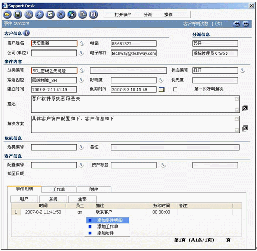 圖:添加事件明細(xì)來記錄采取的服務(wù)支持動作