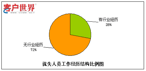 呼叫中心由于高壓力、24小時輪班等工作特性,有相當(dāng)比例的流失是因為不適應(yīng)工作環(huán)境而導(dǎo)致的,其中一個主要原因就是新入職員工想象中的工作環(huán)境和現(xiàn)實情況大相徑庭。而有呼叫中心工作經(jīng)驗的員工對于這點的適應(yīng)性相對較強,因此我們對呼叫中心員工是否有行業(yè)經(jīng)歷方面的情況進行了統(tǒng)計分析。