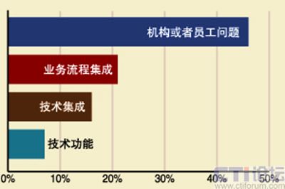 - 服務動機差異,即兩種服務的出發(fā)點不同。一個工商組織是以利潤為導向,利潤的多少取決于顧客的滿意,顧客導向很容易成為其經營的目標,商業(yè)服務滿意度研究是商家追求利潤的結果,是自然而生的;而政府往往缺乏服務的動機,或是借鑒國外或是迫于上級政府的要求,甚至領導可能著眼于政績的提高,然而政府領導看重的這些宏觀內容對于普通工作人員并不具備激勵作用,所以政府工作人員缺乏服務的動機,因此,在公共行政服務滿意度研究中,內部工作人員行為因素的研究更為重要。下圖是國外實施電子政務過程中對影響提高效率的因素的調查結果。