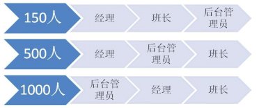 當(dāng)員工人數(shù)到達(dá)500人的時(shí)候,班長(zhǎng)往往有30位左右。很多經(jīng)理已經(jīng)不能夠?qū)γ课话嚅L(zhǎng)有足夠的了解,更不要說(shuō)去認(rèn)識(shí)大部分員工。這個(gè)時(shí)候,經(jīng)理對(duì)班長(zhǎng)的比例過(guò)寬,需要強(qiáng)化后臺(tái)管理員的角色。比如排班、績(jī)效、質(zhì)量管理(而不僅是評(píng)估)、信息分析(數(shù)據(jù)和報(bào)告)、行政、培訓(xùn)等工作中,這些管理輔助角色都在逐漸強(qiáng)化。而每一個(gè)后臺(tái)管理者可能成了經(jīng)理的直接下屬,他們起草的流程和制度,來(lái)由經(jīng)理決策。某種程度上說(shuō),他們比班長(zhǎng)的影響力更大,因?yàn)榘嚅L(zhǎng)還是影響著12-20人。有時(shí)候后臺(tái)管理員也決定了班長(zhǎng)的時(shí)間精力分配,那是班長(zhǎng)最寶貴的資源。那么誰(shuí)是管理者呢?首先是經(jīng)理,其次是后臺(tái)管理員,最后才是班長(zhǎng)。