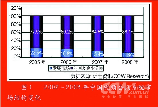 目前,中國視頻會議系統(tǒng)產品主要是以基于專線市場、基于混網市場及Internet軟件視頻會議系統(tǒng)市場兩大類組成。