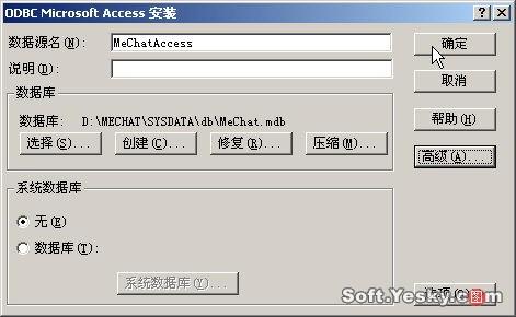 為使Mechat系統(tǒng)具有較高的運(yùn)行效率,我們將其添加數(shù)據(jù)庫(kù)支持,單擊“開(kāi)始”/“設(shè)置”/“控制面板”,選擇“治理工具”/“數(shù)據(jù)源(ODBC)”,切換至“系統(tǒng)DSN”,單擊“添加”按鈕啟動(dòng)ODBC數(shù)據(jù)源添加向?qū)Вx擇“MicrosoftAccessDriver(*、mdb)”,然后在DSN屬性設(shè)置窗口設(shè)置數(shù)據(jù)源名稱為“MeChatAccess”,選擇數(shù)據(jù)庫(kù)文件為D:\MeChat\SysData\db目錄下的MeChat、mdb(如圖23)。設(shè)置完畢,單擊“確定”退出。