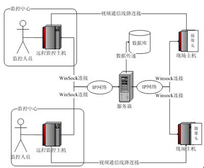 本系統(tǒng)基于瘦客戶端的C/S模式,在體系結構上采用以服務器為中心的星型結構,創(chuàng)新性地把監(jiān)控現(xiàn)場端和監(jiān)控中心端C角色化。即在本系統(tǒng)中所有的監(jiān)控現(xiàn)場端和監(jiān)控中心端相對整個系統(tǒng)的架構而言都是客戶端,它們的通信都需要經(jīng)過服務器的驗證中轉。同時,監(jiān)控中心使用者的登錄由于這種架構模式,也必須要經(jīng)過服務器的驗證才能成功登錄,進而獲得監(jiān)控的權利。