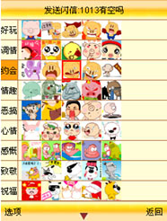 更新完成后再次選擇“發(fā)送閃信”原來空空的屏幕變得熱鬧起來。每個(gè)分類里面都充滿了各種或可愛、或搞笑、或生動(dòng)的形象。選擇一個(gè)動(dòng)畫從屏幕左下的“選項(xiàng)”內(nèi)選擇“發(fā)送”進(jìn)入發(fā)送的操作界面,所選的動(dòng)畫在屏幕中間顯著位置不斷的循環(huán)播放,動(dòng)畫的內(nèi)容一目了然。選擇發(fā)送進(jìn)入收信人信息輸入屏幕,在收信人位置輸入對(duì)方的手機(jī)號(hào)碼,在附言位置輸入文字然后發(fā)送,等待片刻后一條閃信就發(fā)送成功了。所有的發(fā)送和接收到閃信記錄都可以在“收發(fā)記錄”內(nèi)方便的查找、管理或者直接回復(fù)轉(zhuǎn)發(fā)。