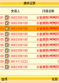 收發(fā)記錄里面詳細(xì)的記錄了所發(fā)生和接收的閃信的。選中一條信息,按中建就可以方便的查看這天信息的內(nèi)容(動(dòng)畫、文字信息、時(shí)間一目了然)。選擇左軟鍵里面的選項(xiàng)可以快捷方便的進(jìn)行“回復(fù)、轉(zhuǎn)發(fā)、刪除”等操作。