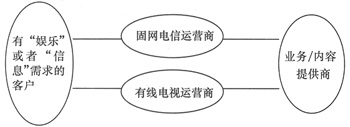 如圖1所示,雖然兩者使用的技術(shù)不同,但它們有一個相同的運營組織結(jié)構(gòu),也就是說,客戶、運營系統(tǒng)和業(yè)務(wù)/內(nèi)容提供商是它們競爭的3要素,下面將從這幾個方面對IPTV與“數(shù)字電視”的競爭做簡要的分析。