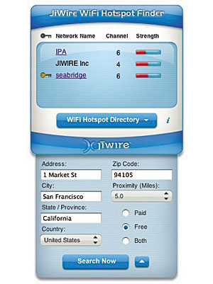 當(dāng)你需要進行緊急無線接入時,有一種方便、免費能找到附近熱點的辦法。運行這個程序并輸入你所在的位置,這個程序?qū)⒘谐龈浇乃袩狳c。它將幫你搜索到付費的或免費的熱點,并保持程序數(shù)據(jù)庫的頻繁更新。