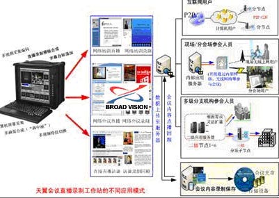 實現(xiàn)同樣的應用,如采用MCU方式,投資巨大,可行性較差,而采用以上方案,可以輕松實現(xiàn)大規(guī)模網絡會議直播應用的擴展,具有極高的投入產出比。