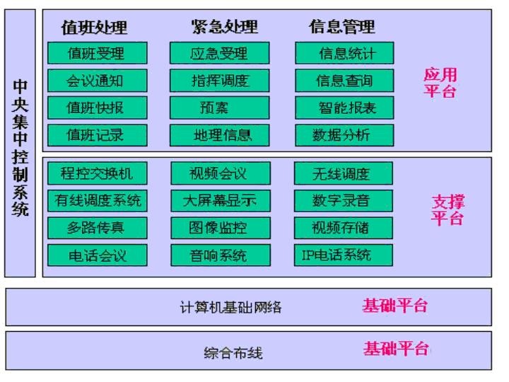 首信應急指揮系統(tǒng)由指揮調度、監(jiān)控、信息綜合系統(tǒng)和基礎設施保障系統(tǒng)組成,具有指揮調度、監(jiān)控和信息綜合等功能。