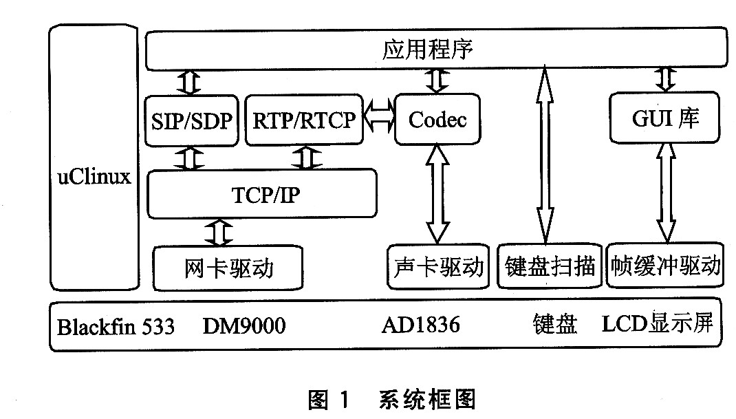 Initiation Protoc01)協(xié)議憑借相對簡單的實現(xiàn)模式和極強的擴展性受到了越來越多的關(guān)注。ADI公司推出的Blackfin處理器是一類專為滿足當(dāng)今嵌入式音頻、視頻和通信應(yīng)用的計算要求和功耗約束條件而設(shè)計的新型16/32位嵌入式處理器。該處理器基于ADI和Intel公司聯(lián)合開發(fā)的微信號架構(gòu)(MSA),擁有類RISC型指令集、雙16位乘法器、雙40位邏輯運算單元(ALU)、40位桶形移位器和4個視頻運算單元(videoALUs),將信號處理功能和通用型微控制器所具有的易用性組合在了一起。這種處理特征的組合使得Blackfin處理器能夠在信號處理和控制處理應(yīng)用中均有較好的表現(xiàn);與此同時,該能力也簡化了硬件和軟件方面的設(shè)計。SIP類似于HTTP協(xié)議,也是一個基于文本的協(xié)議,因而易于讀取和調(diào)試。與此同時,SIP協(xié)議在制訂時就考慮到了擴充性的問題,通過增加新的消息類型、消息頭和消息體即可實現(xiàn)新服務(wù)。即使不能支持基于SIP的舊設(shè)備也不會妨礙這些新服務(wù)。另外,SIP的一個重要特點是,它不定義要建立的會話的類型,而只定義應(yīng)該如何管理會話。有了這種靈活性,也就意味著SIP可以用于眾多應(yīng)用和服務(wù)中。本文介紹了一種基于Blackfin處理器平臺的網(wǎng)絡(luò)電話方案?紤]未來應(yīng)用的拓展需要和網(wǎng)絡(luò)電話的特點,選擇了Blackfin