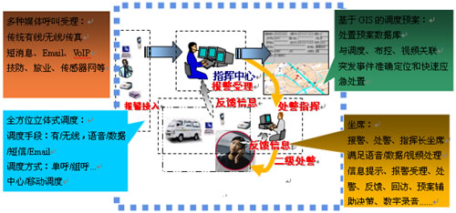 接處警應(yīng)用系統(tǒng)是應(yīng)急聯(lián)動(dòng)中心的核心部分,系統(tǒng)在保證“先進(jìn)、實(shí)用、可靠”的前提下,與全市應(yīng)急聯(lián)動(dòng)單位實(shí)現(xiàn)互聯(lián)互通、信息共享;把接處警系統(tǒng)與GPS、有無線通信、視頻監(jiān)控、預(yù)案指揮等技術(shù)系統(tǒng)有機(jī)的結(jié)合在一起,形成“以計(jì)算機(jī)網(wǎng)絡(luò)為基礎(chǔ),以有線、無線通信為紐帶,以接處警信息傳遞、處理為核心,以資源共享和計(jì)算機(jī)輔助決策為載體的綜合性系統(tǒng)工程”,從而提高應(yīng)急聯(lián)動(dòng)中心的指揮調(diào)度、輔助決策等綜合處置能力,滿足在復(fù)雜條件下指揮、調(diào)度、協(xié)調(diào)、處置城市不同種類和等級(jí)的突發(fā)事件的實(shí)戰(zhàn)需要。