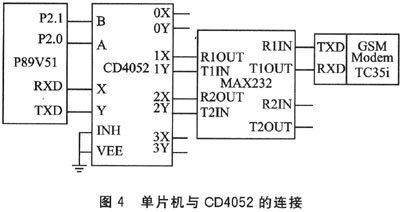 CD4052實際上是2個一分四的數(shù)據(jù)分配器,所擴展的串口均是全雙工異步工作模式,具有很高的工作速度,方便地實現(xiàn)了一片單片機多個串口的擴展能力。以Siemens公司的TC35i