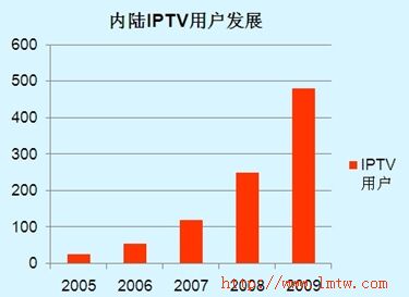 從08年初的51萬用戶到年末的180萬,中國電信IPTV即使面臨政策的限制,仍獲得了極大的發(fā)展。IPTV作為中國電信的戰(zhàn)略新興業(yè)務,作為中國電信切入視頻服務領域、帶動寬帶業(yè)務持續(xù)發(fā)展的重要種子業(yè)務,其價值正被日益認可。