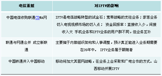 2008年,市場格局所帶來的諸般變化,都為2009年的產業(yè)發(fā)展埋下了伏筆,2009年,將是IPTV發(fā)展的圖變之年。