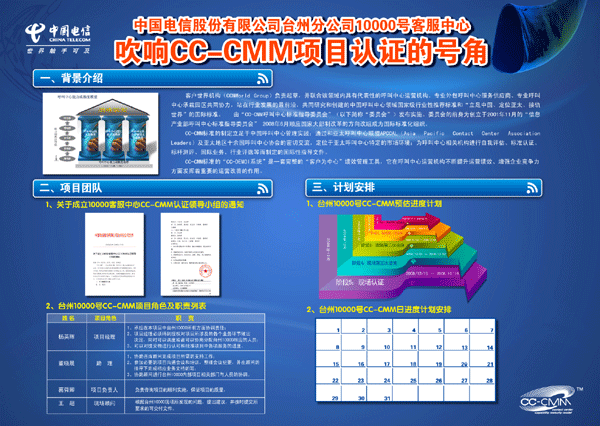 和大多數(shù)的呼叫中心一樣,臺州電信10000客服中心面臨著人員配備跟不上業(yè)務(wù)發(fā)展的速度、營銷業(yè)務(wù)壓力大等諸多問題。臺州電信期望通過實(shí)施CC-CMM標(biāo)準(zhǔn)化咨詢和認(rèn)證,以系統(tǒng)科學(xué)的管理方法解決現(xiàn)存的運(yùn)營問題,持續(xù)穩(wěn)定地提高績效,提升呼叫中心在集團(tuán)公司中的地位。