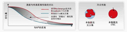 實(shí)現(xiàn)新的802.11n平臺(tái)面臨著嚴(yán)峻的技術(shù)挑戰(zhàn)。Broadcom公司最新的Intensi-fi XLR技術(shù),包括超級(jí)無線性能以及每個(gè)頻段(2.4GHz和5GHz)上高達(dá)300Mbps的真正無線帶寬。由于在專門的5GHz頻段上很少有競爭性器件,因此干擾較少,可以提供更多的信道,從而使得將高價(jià)值的多媒體內(nèi)容放在這個(gè)頻段上具有很大的優(yōu)勢。
