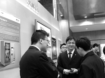 在江蘇3G業(yè)務(wù)商用發(fā)布會(huì)現(xiàn)場(chǎng),工作人員正在介紹無線視頻監(jiān)控應(yīng)用