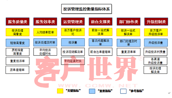 根據(jù)以上依據(jù)分析,收集影響投訴管理工作的各方面指標,再結合以上原則對所收集的指標進行篩選,即可設計出一套適合實際運營的投訴管理工作監(jiān)控衡量的指標體系。